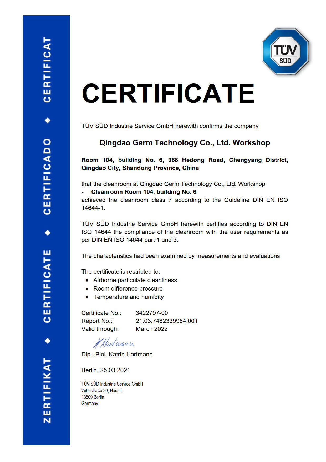 青島2021年4月19日 /美通社/ -- 近日,TUV南德意志集團(tuán)(以下簡稱“TUV南德”)與青島喆沐科技有限公司(以下簡稱“喆沐科技”)于青島舉行潔凈室ISO 14644證書授予儀式。喆沐科技總經(jīng)理解環(huán)宇先生及TUV南德建筑與基礎(chǔ)設(shè)施部經(jīng)理王鵬先生、建筑與基礎(chǔ)設(shè)施部主管李雪婉女士共同出席了此次頒證儀式,并一同回顧合作項目歷程及經(jīng)驗總結(jié)。在TUV南德的全力協(xié)助下,喆沐科技順利獲得ISO 14644 潔凈室 Class 7證書,標(biāo)志著其打造的工業(yè)微生物培養(yǎng)基生產(chǎn)車間已達(dá)到國際標(biāo)準(zhǔn)水平,有助于提升其針對工業(yè)微生物檢測的產(chǎn)品生產(chǎn)及技術(shù)研發(fā)等綜合實力,將進(jìn)一步夯實其作為國內(nèi)工業(yè)微生物培養(yǎng)基定制生產(chǎn)企業(yè)的領(lǐng)先地位。