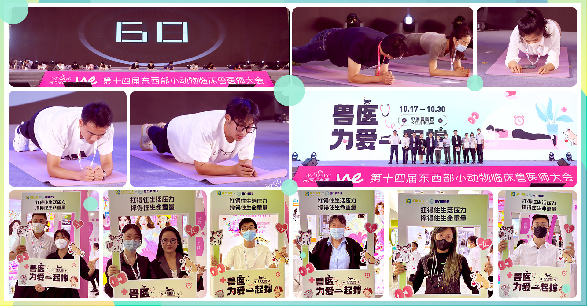 從10月中旬以來,漢維在獸醫(yī)行業(yè)內(nèi)首次發(fā)起健康公益平板撐活動-【獸醫(yī)為愛一起"撐"】,呼吁大家關(guān)注自身健康、助力動物公益。公益活動啟動之時便受到業(yè)內(nèi)廣泛關(guān)注,其中不乏東西部獸醫(yī)大會、寵業(yè)家、派讀寵物、新瑞鵬、瑞派、瑞辰、禮藍等行業(yè)大咖精英助力。在11月2日,第14屆東西部小動物臨床獸醫(yī)師大會開幕式舞臺現(xiàn)場,作為本次健康公益項目的壓軸活動也精彩圓滿舉行,來自五湖四海的獸醫(yī)師們齊聚一堂,懷揣著對于寵物公益事業(yè)的熱情與愛心,獸醫(yī)師在現(xiàn)場完成平板撐公益助力行動,幫助解決當?shù)亓骼藙游飭栴},共同為動物公益事業(yè)貢獻自己的力量。