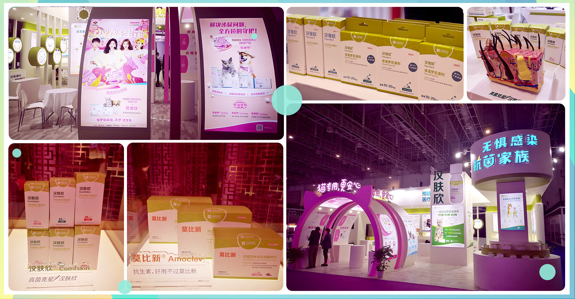 整個展會期間,漢維寵仕展臺,重點展示了當家產(chǎn)品-寵物專用抗生素"莫比新"、真菌克星"漢膚欣",還特別設(shè)置了"貓專用 更安心"的貓友好系列產(chǎn)品專區(qū)。同時,漢維寵仕作為江蘇衛(wèi)視《陽光姐妹淘》特約合作伙伴,節(jié)目當期明星產(chǎn)品-驅(qū)蟲滴劑&噴劑"漢寵欣"和尿路健康營養(yǎng)支持片"優(yōu)泌可",也均在展會上重點呈現(xiàn)。