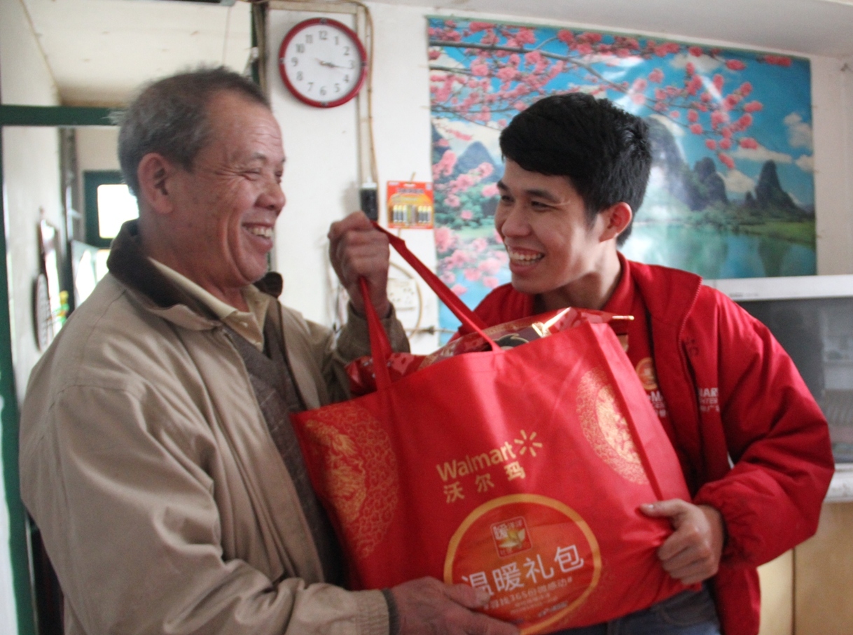 在南寧,沃爾瑪人特地看望了居民安全“守門神”黃師傅。不論刮風(fēng)下雨,退休工人黃師傅十年如一日地為南寧市鐵路局宿舍的居民義務(wù)巡邏。社區(qū)居民都親切地稱他黃鎖頭。