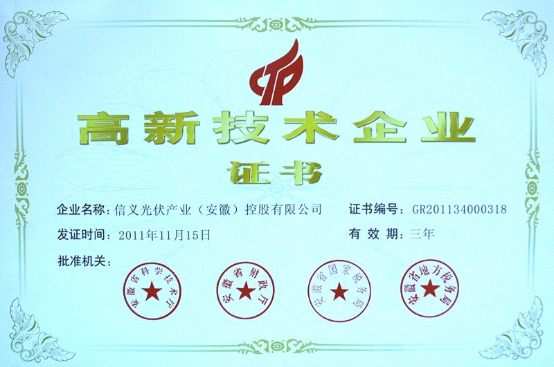 近年來,信義光伏產(chǎn)業(yè)堅(jiān)持走科技發(fā)展之路,認(rèn)真把握國家對高新技術(shù)企業(yè)的利好政策的契機(jī),增強(qiáng)企業(yè)的市場競爭力,使企業(yè)發(fā)展充滿活力。公司以節(jié)能、環(huán)保科技作為主要研發(fā)方向,進(jìn)行薄膜和太陽能領(lǐng)域的技術(shù)研究。目前,公司匯聚來自國內(nèi)外多名電子玻璃及薄膜技術(shù)、太陽能技術(shù)等等領(lǐng)域的頂尖專家和優(yōu)秀人才。公司擁有國際先進(jìn)水平的開發(fā)軟件、儀器和設(shè)備上千臺套。截至2011年底,公司已累計(jì)申請專利近45項(xiàng),其中發(fā)明專利21項(xiàng)。