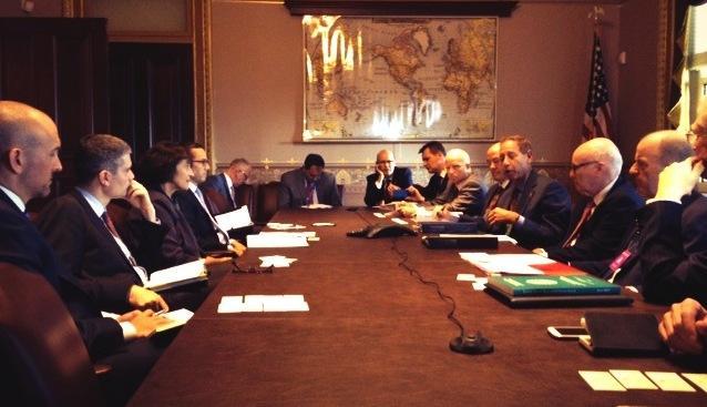 在上海美國商會2013屆董事會主席白德能(Robert Theleen)和上海美國商會總裁季瑞達(Kenneth Jarrett)的帶領下,代表團一行在為期三天行程中,分別與奧巴馬政府高級官員、國會議員及頂級智囊團成員舉行了50多場會議。會議期間,代表團與政府官員和智庫專家討論了在華美國企業(yè)所處商業(yè)環(huán)境,表達了對中美兩國達成雙邊貿(mào)易協(xié)定(BIT)的支持,以及對美國中小企業(yè)發(fā)展和中國即將在上海正式成立的自由貿(mào)易區(qū)(Free Trade Zone)規(guī)劃的支持。
