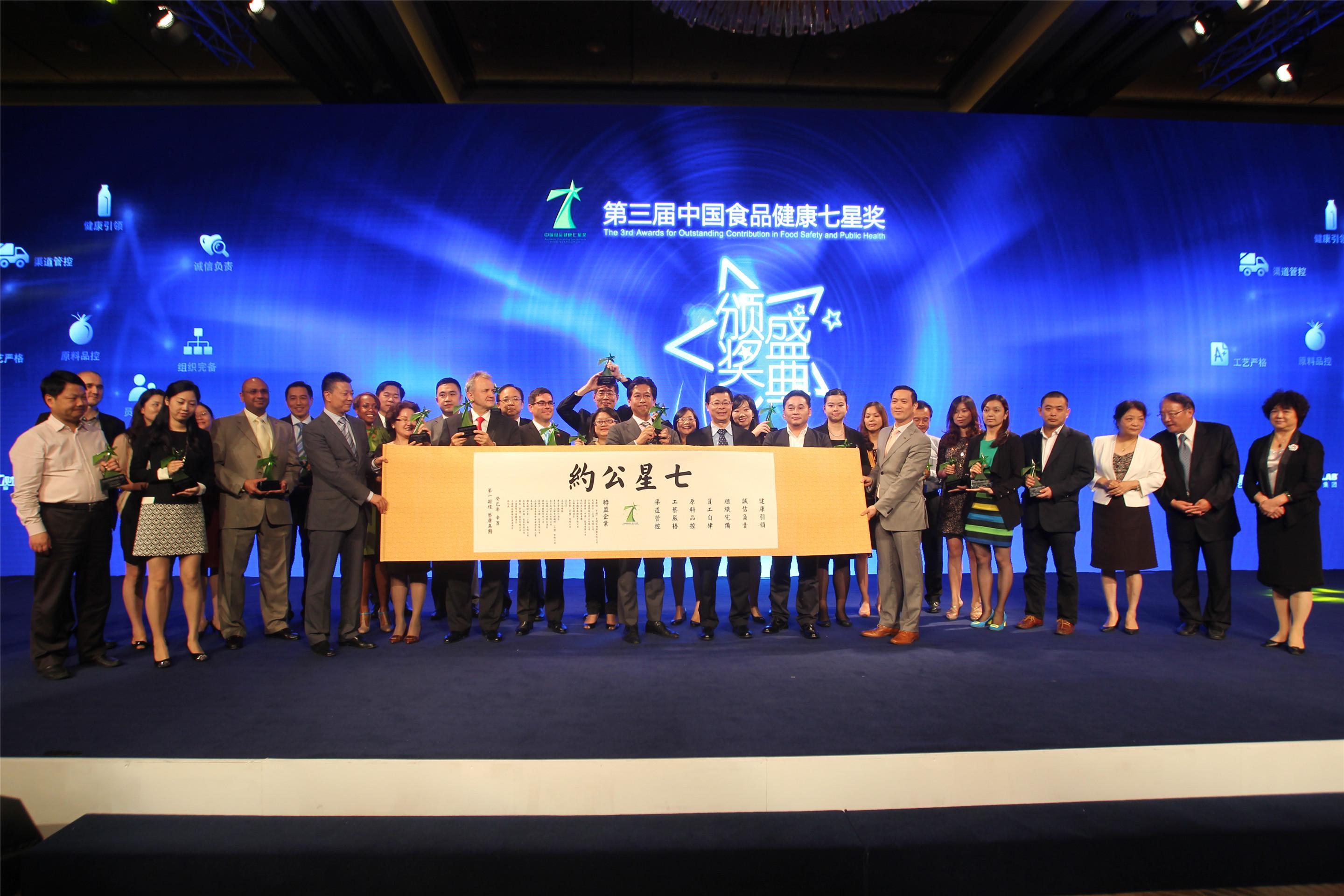 中國食品健康七星獎(jiǎng)已成功舉辦兩屆,受到業(yè)界的廣泛好評(píng)及認(rèn)可。2013年,第三屆中國食品健康七星獎(jiǎng)仍秉承公正而嚴(yán)謹(jǐn)?shù)脑u(píng)選流程,依托專業(yè)、客觀和權(quán)威的評(píng)價(jià)方法,集合政府、行業(yè)專家、媒體及公眾等多方力量,對(duì)各參選企業(yè)進(jìn)行嚴(yán)格篩選和全面評(píng)估,并經(jīng)評(píng)審委員會(huì)專家終審,最終評(píng)選出對(duì)公眾健康安全負(fù)責(zé)的食品企業(yè)。本屆七星獎(jiǎng)共有三十余家企業(yè)分別獲得“年度餐飲服務(wù)企業(yè)”、“年度食品制造企業(yè)”和“年度零售連鎖企業(yè)”獎(jiǎng)項(xiàng)。
