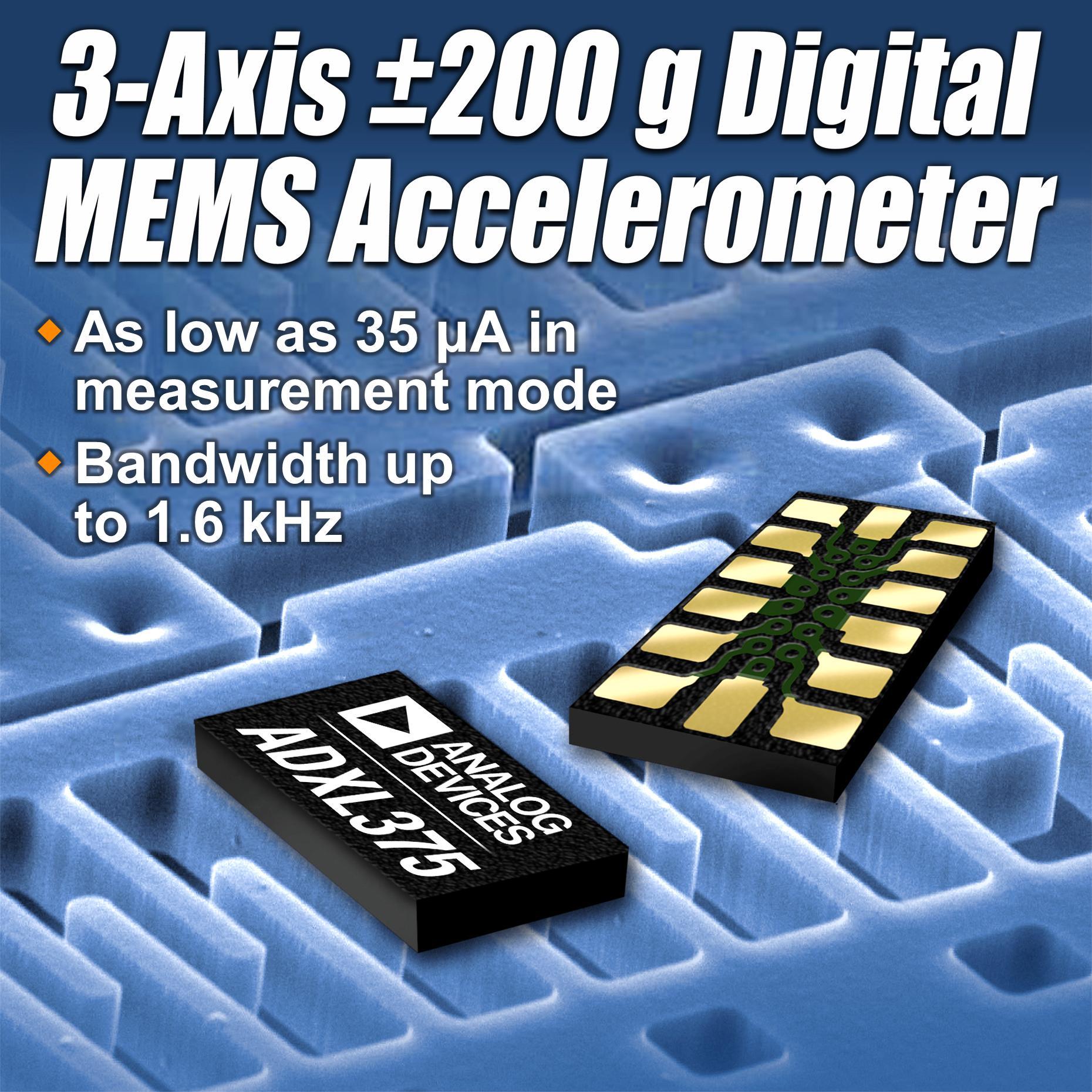 與用于測量高g事件的競爭傳感器相比,ADI公司的ADXL375 200 g數(shù)字MEMS加速度計可以提供兩倍以上的帶寬,而功耗卻不到其一半。