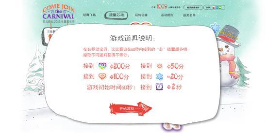 為配合巴拉巴拉2013隆冬高級羽絨服系列上世,一款全新的溫暖游戲“能量‘芯’動”于2013年10月25日與大家見面,截至日前,吸引超過10萬人次的試玩體驗。風(fēng)格清新可愛的手繪背景,簡單明朗的游戲規(guī)則,挑戰(zhàn)不斷更新的排行榜名次,無不讓這款溫馨的小游戲還未上線就備受廣大玩家的關(guān)注。更為吸引大家眼球的是,在親子檔極為火熱的年終收官之際,游戲中享受無限冰雪之趣的小正太蘿莉們時尚潮范的冬日裝扮,將會把親子檔推上又一個高潮!足不出戶,就能感受與眾不同的夢幻冬日。