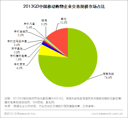 2013Q3移動(dòng)購物市場(chǎng)規(guī)模433.4億元,保持高速增長(zhǎng)