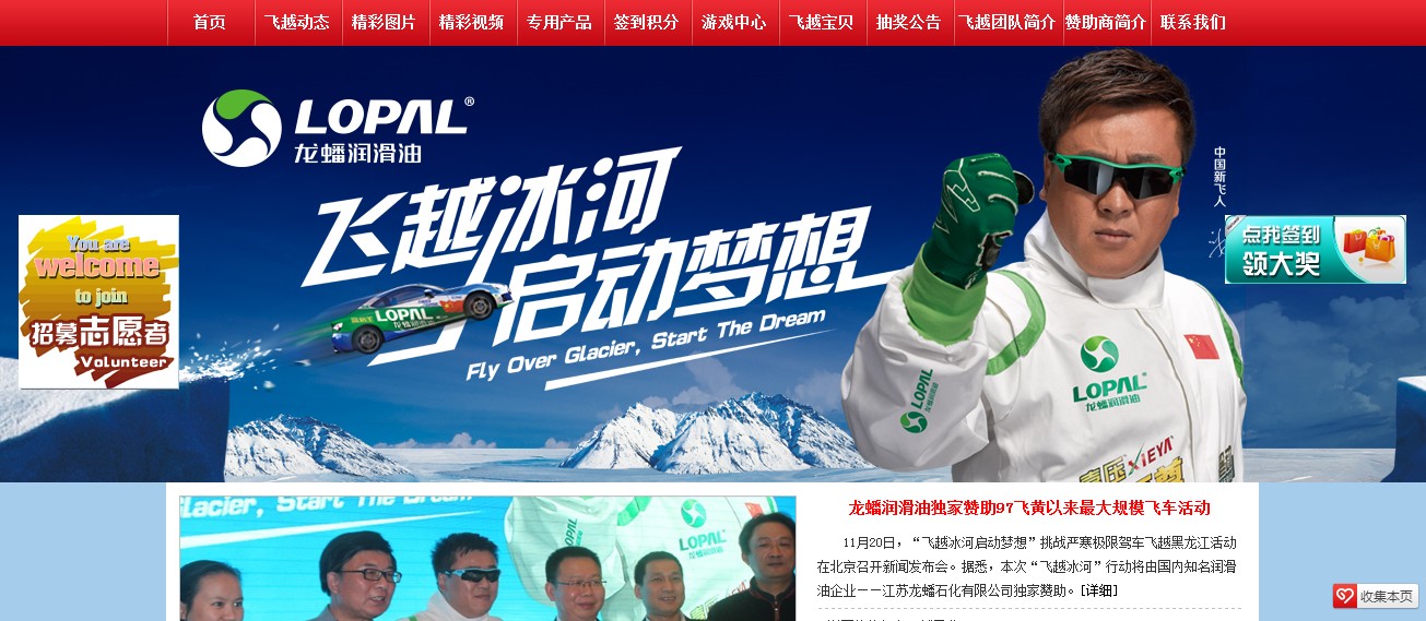 這場(chǎng)由江蘇龍?bào)词邢薰局鬓k的“飛越冰河 啟動(dòng)夢(mèng)想”飛車挑戰(zhàn)活動(dòng),旨在傳遞正能量、踐行中國(guó)夢(mèng),在2014年新年來(lái)臨之際,創(chuàng)造一場(chǎng)氣勢(shì)如虹的“世紀(jì)飛越”傳奇。為方便廣大讀者更加深入地了解飛越冰河項(xiàng)目籌備進(jìn)展的最新新聞動(dòng)態(tài),同時(shí)參加“飛越”相關(guān)的各類互動(dòng)環(huán)節(jié)、贏取豐厚獎(jiǎng)品,活動(dòng)組委會(huì)今日正式推出本次活動(dòng)的官方網(wǎng)站。